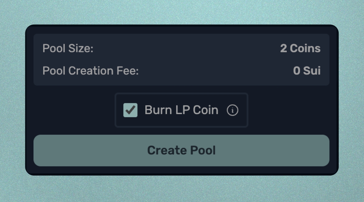 池创建者可选择在创建池时烧毁初始流动性 LP 代币。这些 LP 代币将被发送到一个无法到达的地址,并且永远无法检索。这意味着,用于初始化池的所有流动性将被永久锁定在池中。