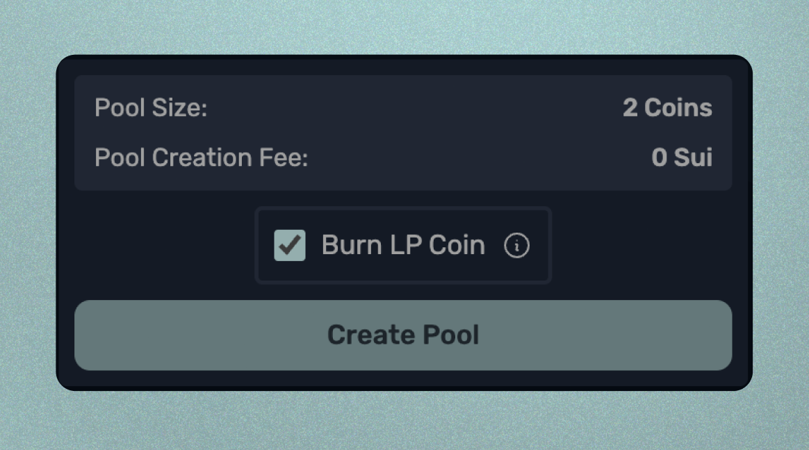 池创建者可选择在创建池时烧毁初始流动性 LP 代币。这些 LP 代币将被发送到一个无法到达的地址，并且永远无法检索。这意味着，用于初始化池的所有流动性将被永久锁定在池中。