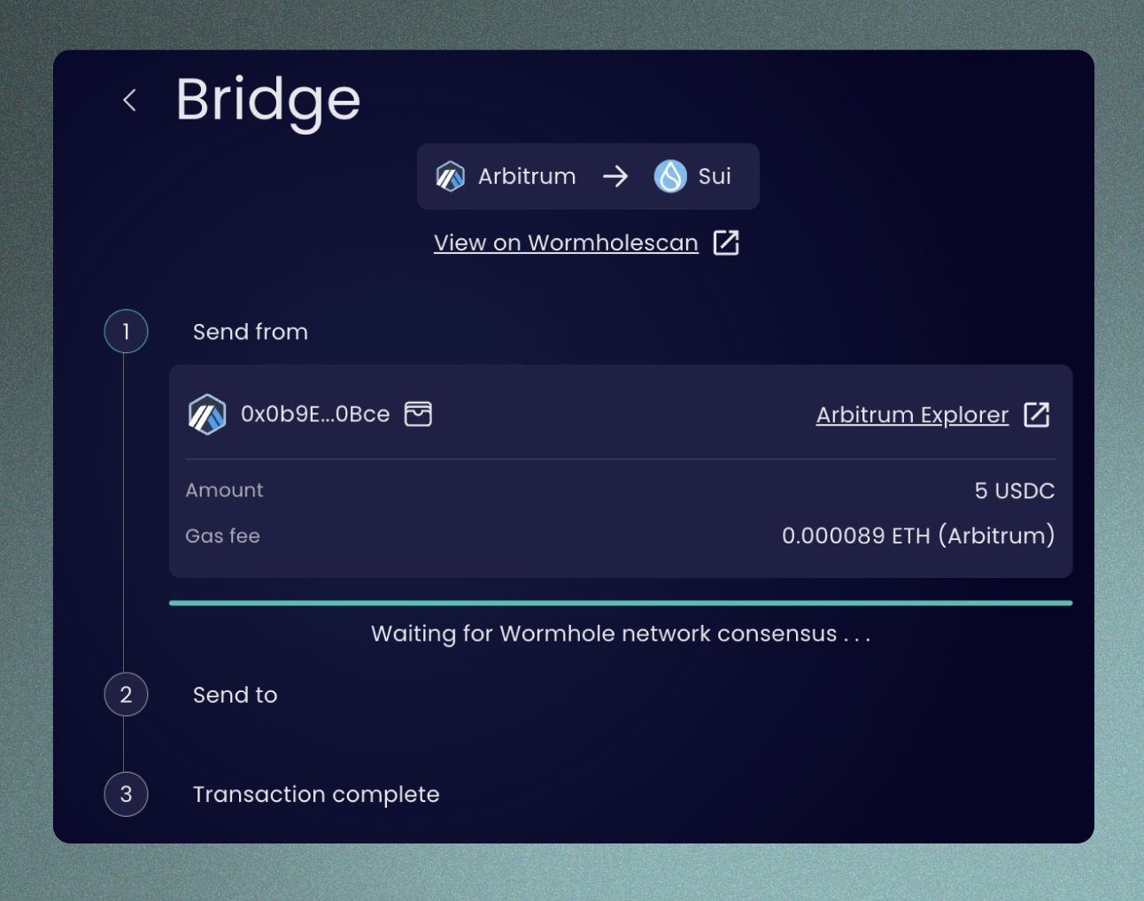 使用Wormhole 进入 Sui 生态系统非常简单,并支持多种其他区块链。要开始,请点击屏幕顶部菜单栏中的按钮,转到桥接页面。