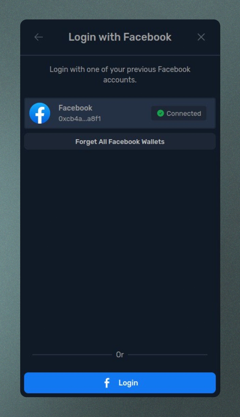 点击“忘记所有[Facebook]钱包”以删除与您在该平台和我们网站之间的连接相关的所有数据。