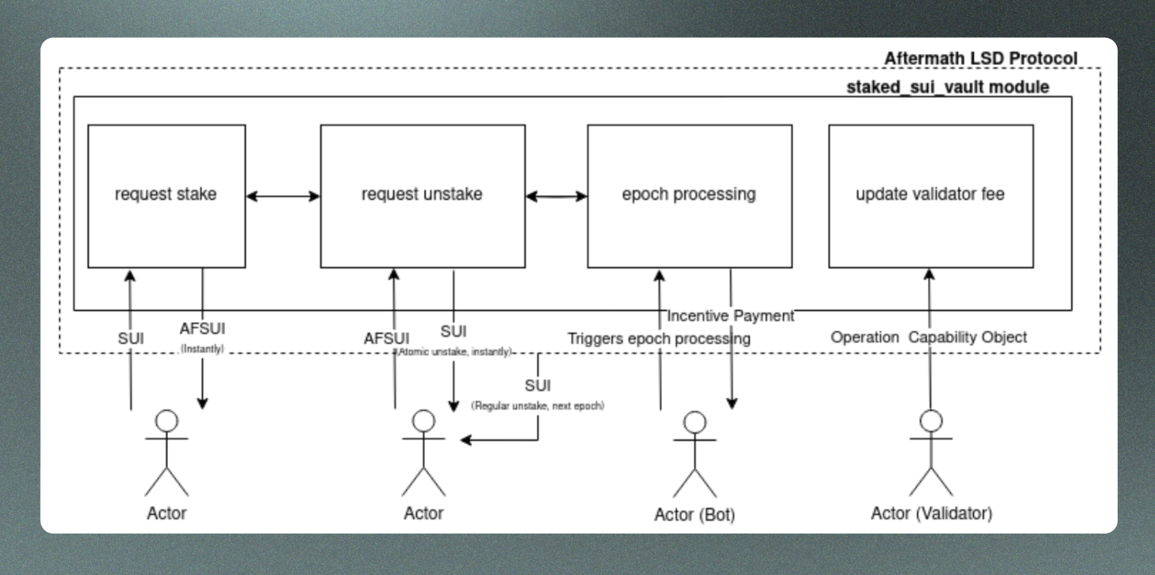<figure><img src="https://content.gitbook.com/content/dKvTsNMHcoUbfcyfXgsE/blobs/AwjVtJOBnAvhjq3fopzs/Screenshot%202024-02-22%20at%2011.55.57%20AM.png" alt=""><figcaption><p>AftermathLSD协议stake_sui_vault模块图解</p></figcaption></figure>